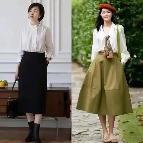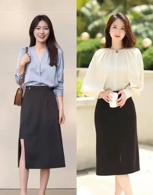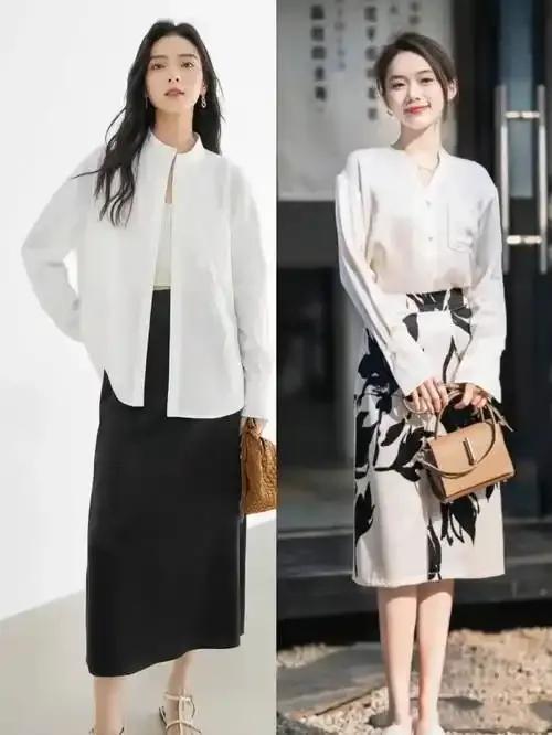 白衬衫和黑色半裙这一对搭配,简直是上班族的好帮手。白衬衫特别百搭,不管配啥都不会难看;黑色半裙又特别经典,这两件搭在一起,看着简简单单的,却很有高级感。穿上以后显得人轻盈又有气质,上班、逛街、约会穿都没问题。